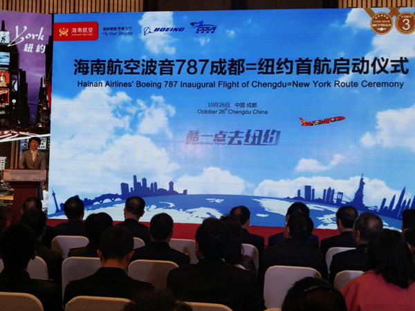 海南航空今日开通成都-纽约直飞航线