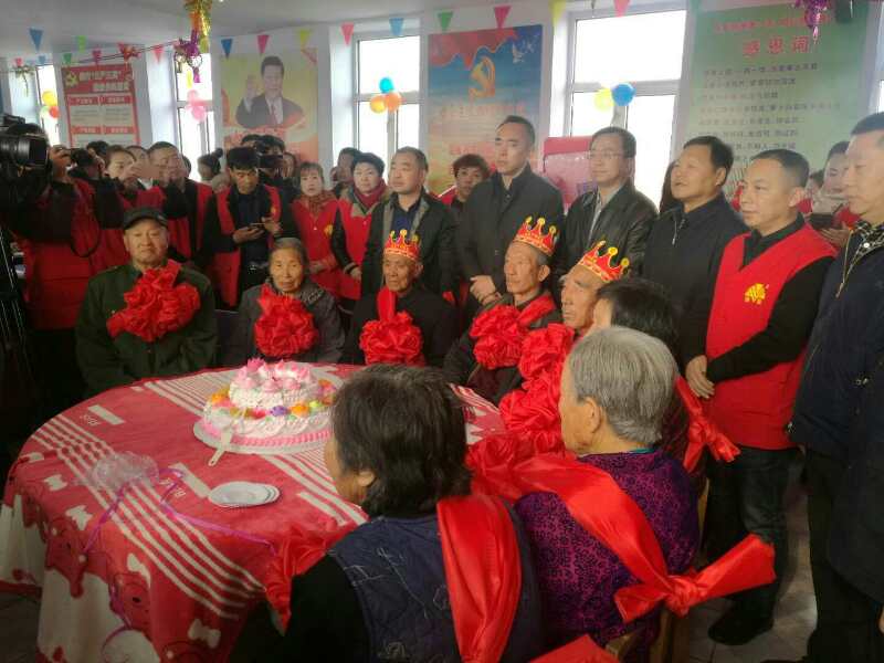 会议结束后,参会领导为八位披戴大红花过生日的高寿老人赠送了蛋糕和生日祝福、并与大家一起品味蛋糕后合影留念。过生日的老人流出了幸福的泪水。在喜庆的音乐声中,180多位老人的饺子大餐徐徐拉开了揭牌仪式的高潮。