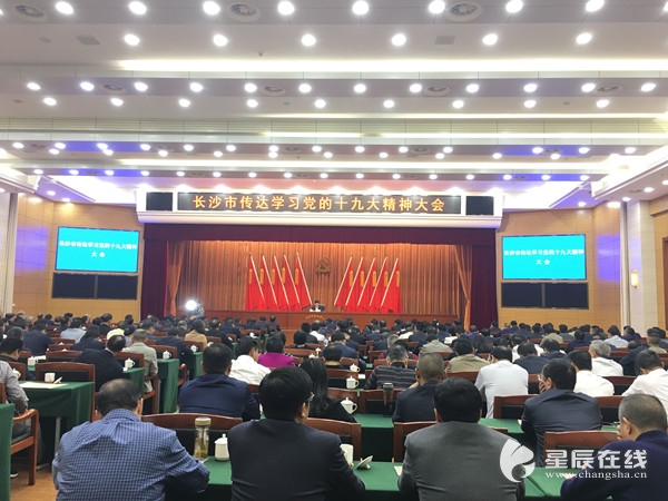 (28日上午,长沙市委召开传达学习党的十九大精神大会。图片由星辰全媒体记者 胡晶晶/摄)