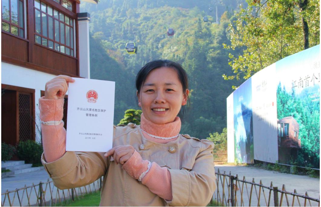 工作人员展示《齐云山风景名胜区保护管理条例》。.