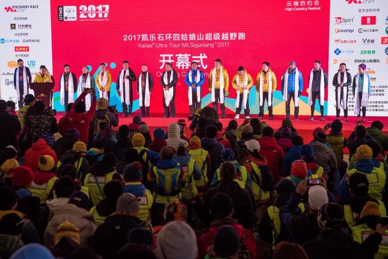 【香港商报网讯】记者郭代勤报道:11月3日,由阿坝州人民政府主办,四姑娘山景区管理局、阿坝州体育局、小金县人民政府和阿坝州旅发委联合承办的2017凯乐石环四姑娘山超级越野跑在阿坝州小金县四姑娘山景区开幕。来自21个国家和地区的829名参赛者于11月4日凌晨向山而行,开启了CCB50公里组、DFR42公里组、YMR60公里组以及UTMS100公里组四个组别的环四姑娘山超级越野跑,其中包括外籍选手88名。