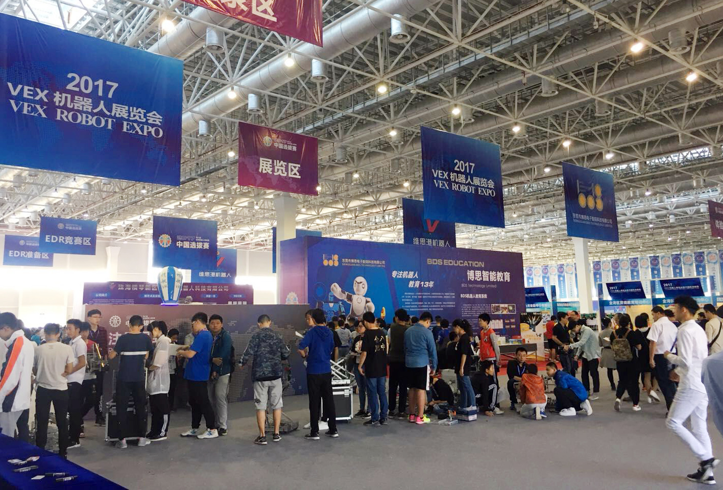 据了解,本届展赛以“展新竞赛、协作共进”为主题,采用国内首创将赛事和展览相结合的形式进行。第八届亚洲机器人锦标赛中国区选拔赛是国内最高级别的VEX机器人赛事(简称“国赛”),该赛共分为华南区赛、华西区赛、华东区赛、华北区赛4个赛区,经过7个月的激烈角逐,共有来自全国24个省、直辖市选拔出的517支优秀队伍共3000人晋级参赛,参赛队伍及人数均创历届大赛之最。同时,现场还有有来自美国、阿联酋、新加坡、港澳台等国家和地区的机器人队伍与国内的团队进行激烈的角逐。其中,VEX机器人工程挑战赛、VEX IQ机器人工程挑战赛优胜队将直接晋级参加将于今年12月份在新西兰举办的亚洲机器人锦标赛(简称“洲赛”)。赛事期间还将举办机器人嘉年华、机器人论坛、机器人赛事、机器人创客创意竞赛,机器人亲子活动等项目活动。