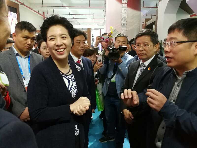 在安化馆内,乌兰仔细询问了湖南省云上茶业有限公司打造的“可视频追溯+无人茶馆+VR全景体验”组合一体的云上智慧农业体验馆。通过该公司引进的网络视频连麦系统,乌兰与公司茶厂员工实现在线实时互动。