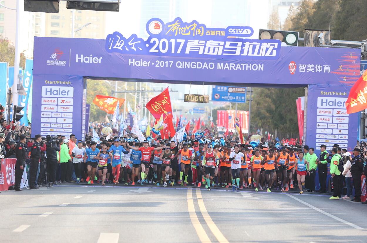 【香港商報網訊】11月5日8時,海爾?2017青島馬拉松在青島五四廣場前激情起跑。來自全國各地及美國、日本、馬來西亞、英國、韓國、德國、俄羅斯、芬蘭、荷蘭、新西蘭、意大利,肯尼亞等20個國家和地區的近2萬名運動員參賽。經過激烈比拼,蒙古選手阿巴扎維以2小時20分55秒的成績獲得男子組比賽冠軍,埃塞俄比亞選手貝克勒·邁瑟特·塔德瑟(Bekele Meserte Tadese)以2小時51分57秒獲得女子組冠軍,埃塞俄比亞選手阿貝瑞·尤瑟夫·沃克尼(Abere Yosef Workineh)以1小時4分59秒獲得男子半程冠軍,中國選手趙艷麗以1小時14分42秒獲得女子半程冠軍。