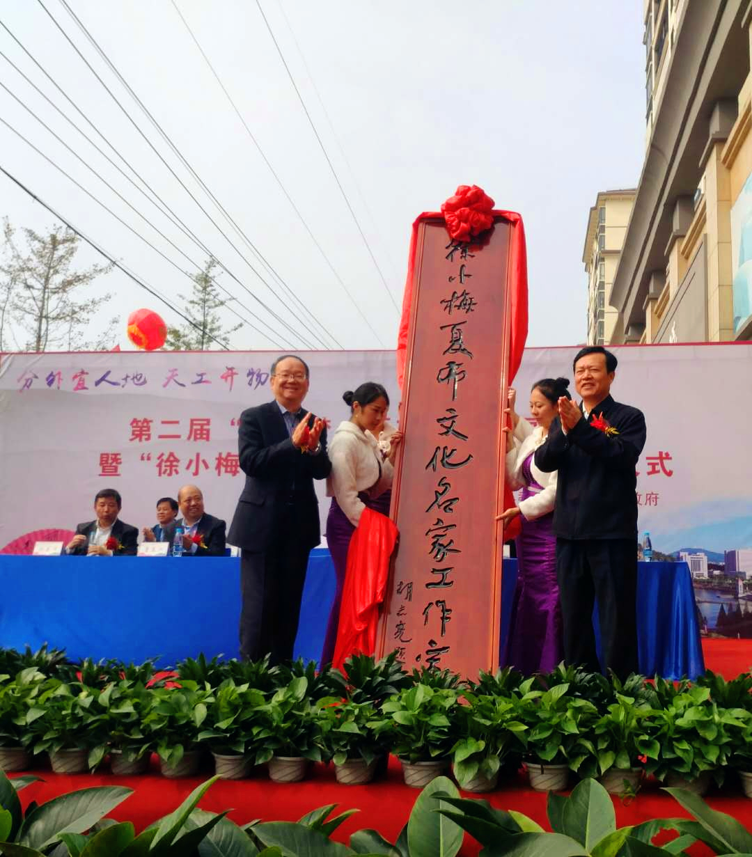 中国纺织工业联合会党委书记高勇、新余市人大常委会主任胡高平为“徐小梅夏布文化名家工作室”揭牌。