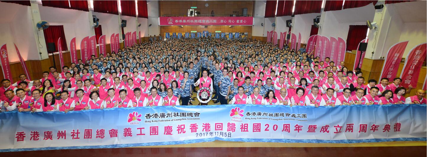 【香港商报网讯】记者赖小青报道:香港广州社团总会义工团庆祝香港回归祖国20周年暨义工团成立两周年典礼,日前假福建中学(小西湾)举行。中联办副主任何靖,广州市委常委、统战部部长卢一先,民建联主席李慧琼等出席主礼。香港广州社团总会会长霍震寰、总会主席黄俊康、义工团主席方俊文等出席同庆。典礼大会上,何靖、卢一先授予方俊文义工团舰队舰长指挥剑和义工号旗,并参加义工团掌舵启航仪式。仪式后,举办了庆回归表演、互动有奖游戏、爱心回归之爱心社区(中医义诊、头发义剪等)、主题互动照相馆等喜气洋洋柴湾嘉年华活动,吸引了香港市民逾4000人参加。