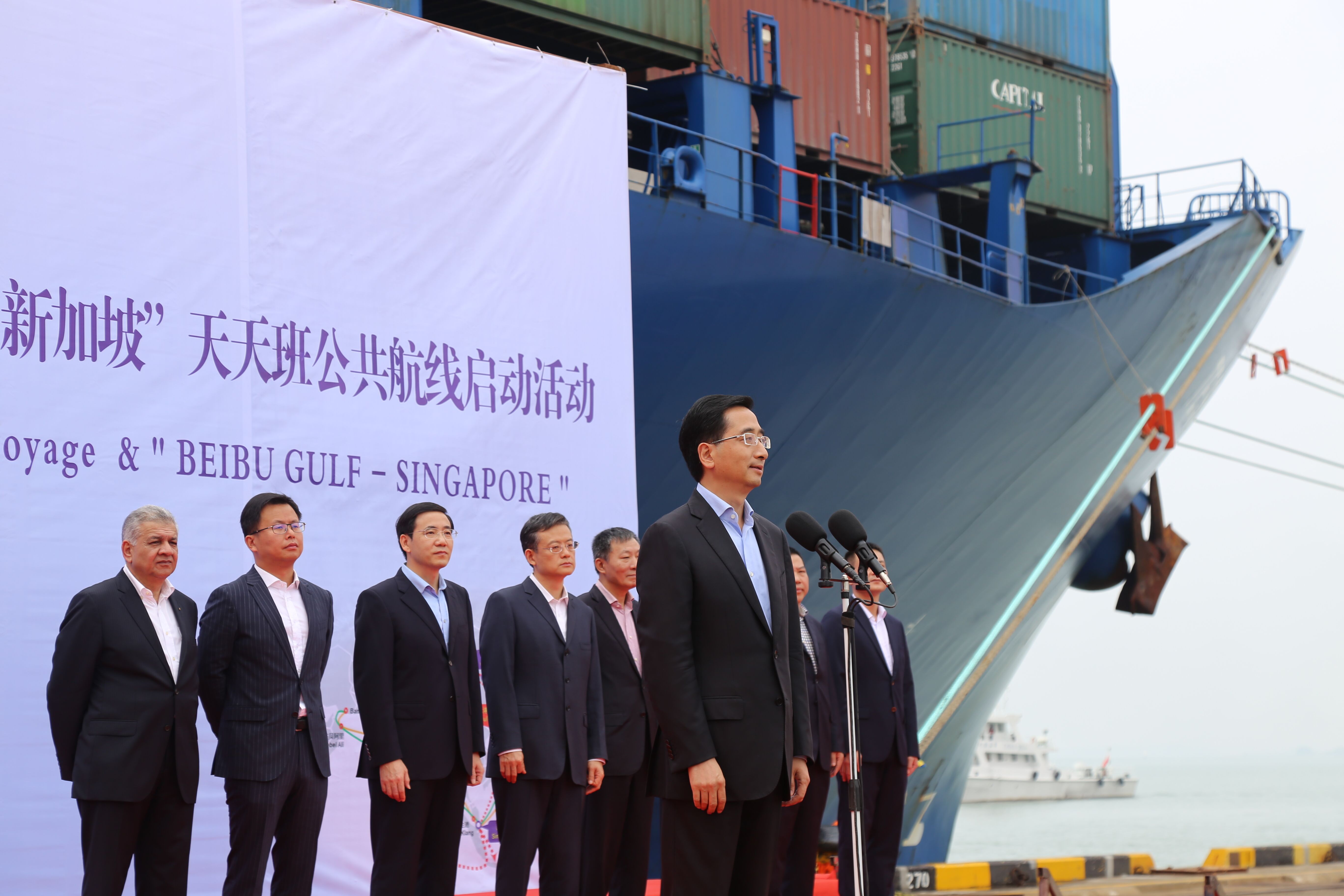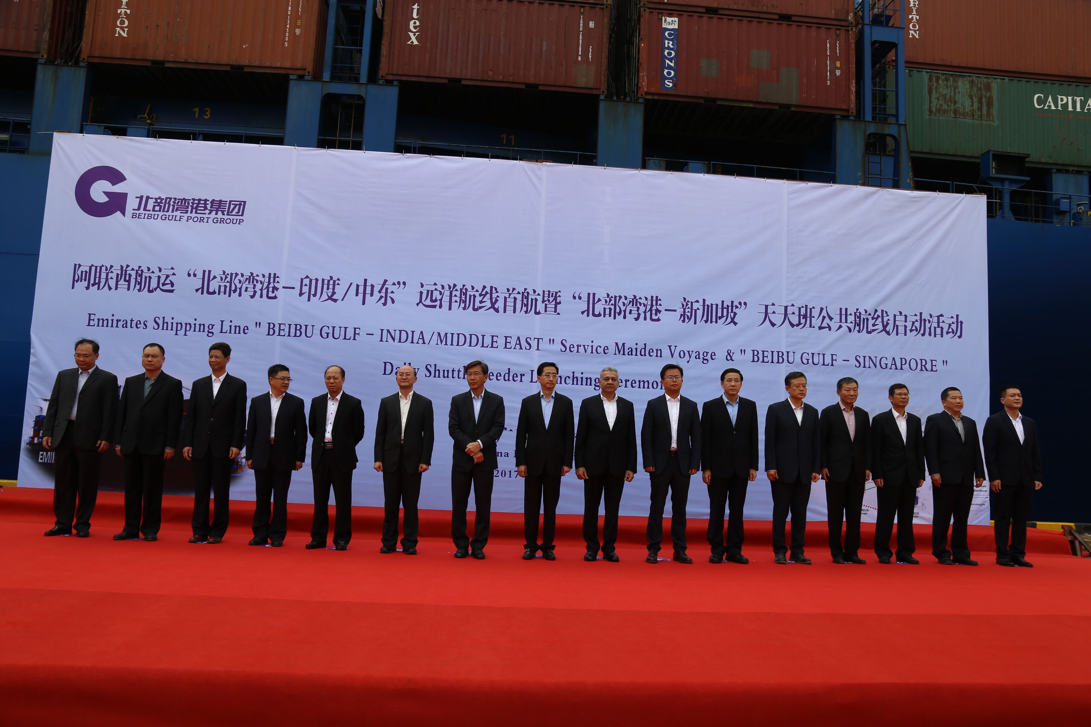 【香港商报网讯】记者唐琳报道:2017年11月9日上午,由阿联酋航运运营的“北部湾港-印度/中东”远洋航线首航暨“北部湾港-新加坡”天天班公共航线启动活动在钦州保税港区举行,这标志着北部湾港直航新加坡、通达印度/中东等地的远洋航线正式开通,也是中新互联互通南向通道有效延伸及开拓国际中转业务的关键一步。