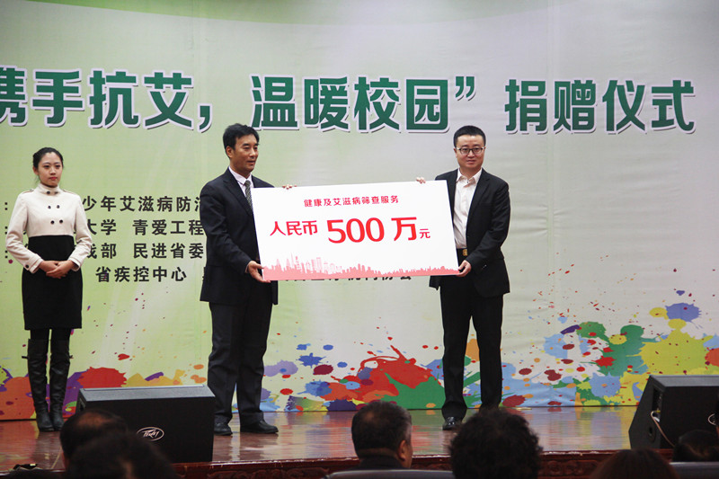 黑龙江省政协委员、民进省委常委、省工商联执委、哈尔滨美罗湾医院院长马海龙向黑龙江大学师生赠送了价值500万元的健康及艾滋病筛查服务,并同时向中国青少年艾滋病防治教育工程办公室捐赠10万元,用于购置暖冬衣物,中国青少年艾滋病防治教育工程办公室常务副主任、北京青爱教育基金会副理事长李扁接受了捐赠并将其转赠给黑龙江大学,用于购置家庭经济困难学生的暖冬衣物。