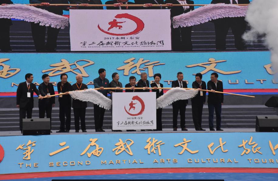 【香港商报网讯】记者唐勇平报道: 武东安,会英雄。11月11日上午,东安县和谐文化广场上旌旗飘舞,锣鼓震天,以“文武双全,大美东安”为主题的东安第二届武术文化旅游周盛大开幕。省人大常委会副主任谢勇,省政协副主席欧阳斌,省人大原副主任唐之享,永州市委书记、市人大常委会主任李晖,省体育局局长李舜,湖南省旅发委副主任高扬先,湖南省文化厅党组成员、纪检组长廖星,永州市委副书记、政法委书记张严,永州市政协主席蒋善生,国家武协副主席晏西征,湖南省总工会副巡视员田良玉,中共东安县委书记冯德校等领导出席大会,并共同启动开幕式。东安县委副书记、县长龙向洋主持开幕式。