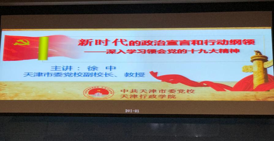 【香港商报网讯】 记者邢宝华报道:连日来,天津掀起学习宣传贯彻十九大热潮,大力推动十九大精神“六进”,即进企业、进农村、进机关、进校园、进社区、进军营,确保全覆盖。11月13日,中央驻津新闻工作者协会组织驻津记者随天津市委党校副校长徐中教授一起走进企业—--中石油渤海钻探工程公司,徐中教授在题为《新时代的政治宣言和行动纲领》的报告中,对学习宣传贯彻党的十九大会议精神强调的“四个对焦”和着重把握的十个“深刻领会”进行了讲解。