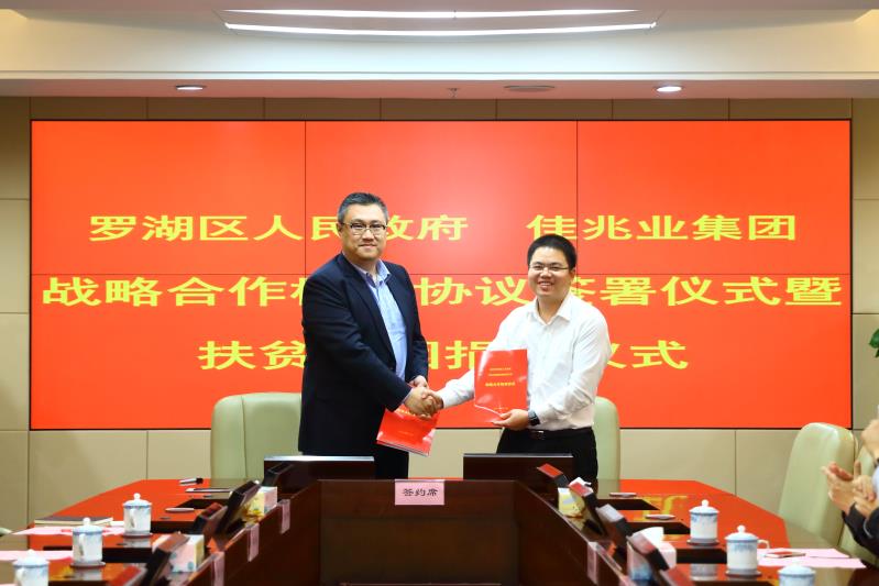 【香港商报网讯】记者何松报道:11月14日下午,罗湖区政府与佳兆业集团战略合作签署仪式暨扶贫济困捐赠仪式在深圳市罗湖区政府举行。罗湖区政府相关领导与佳兆业集团控股管理层共同出席签约仪式。本次战略合作协议的签署,既是对佳兆业集团综合实力的认可,更是罗湖区探索现代产业体系和产业发展模式的重要举措。
