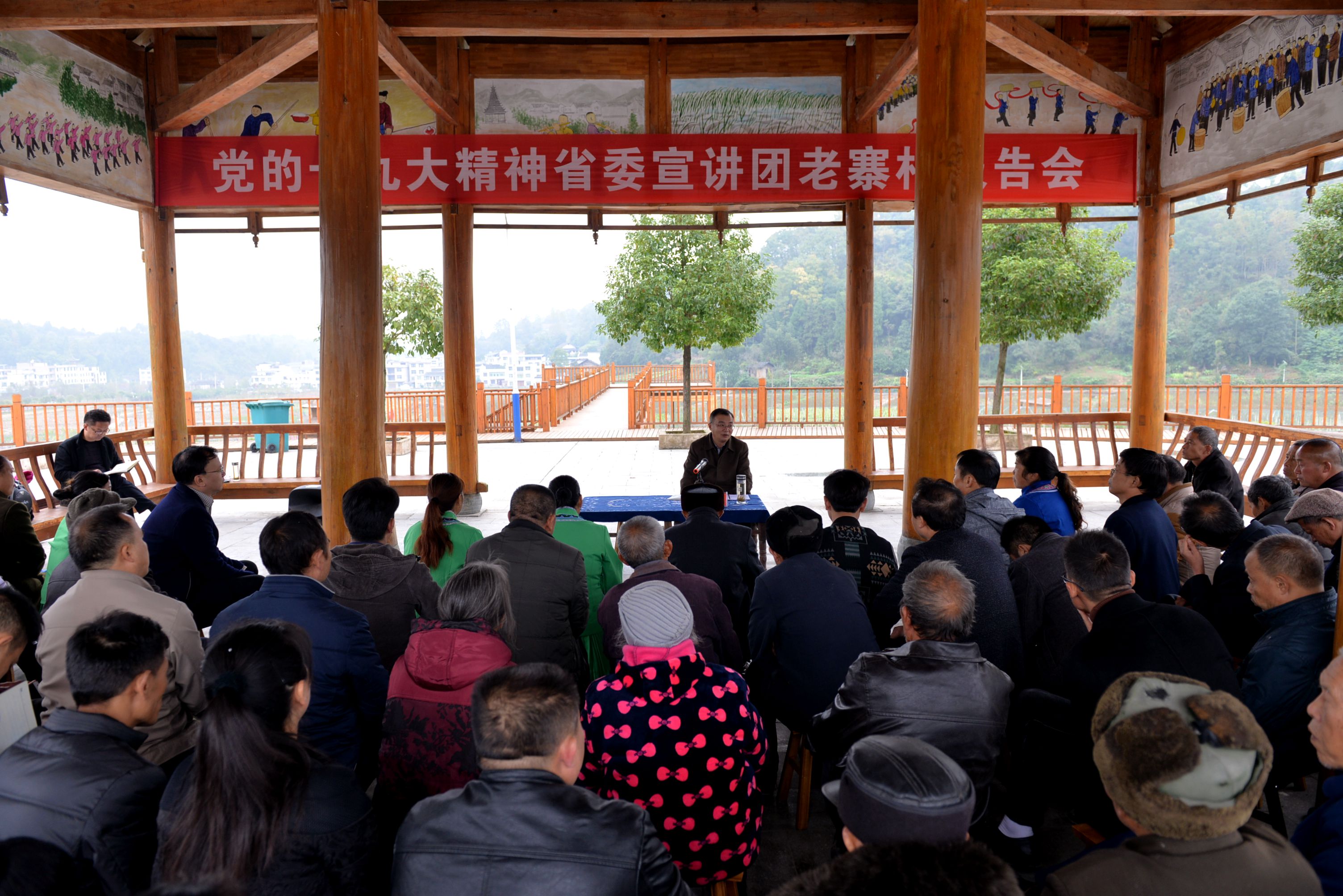【香港商报网讯】记者 黄庆松 通讯员 胡攀学 报道:14日,贵州省委宣讲团成员、讲师团团长朱文东在铜仁市玉屏县新店镇老寨村为村民干部职工宣讲党的十九大精神。