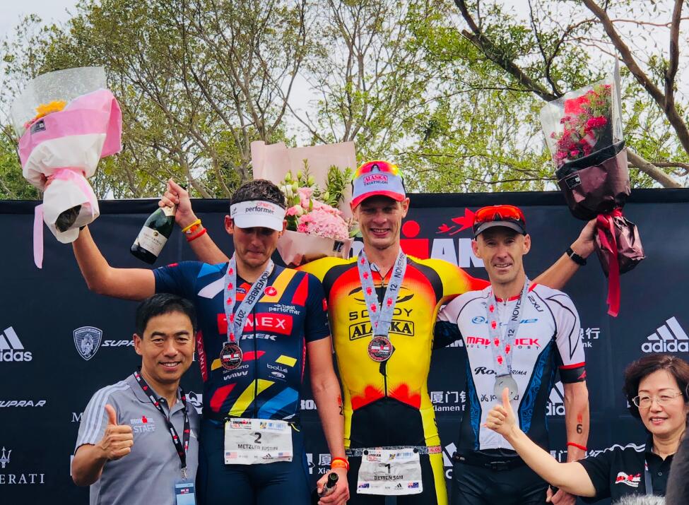 经过游泳1.9公里,骑行90公里以及跑步21.1公里后。最终,来自澳大利亚选手Sam Betten收获了男子组职业冠军,女子组职业冠军则由来自爱尔兰的Eimear Mullan摘得。中国选手巴斯(李鹏程)和胡燕分别摘得了各自年龄组的冠军。