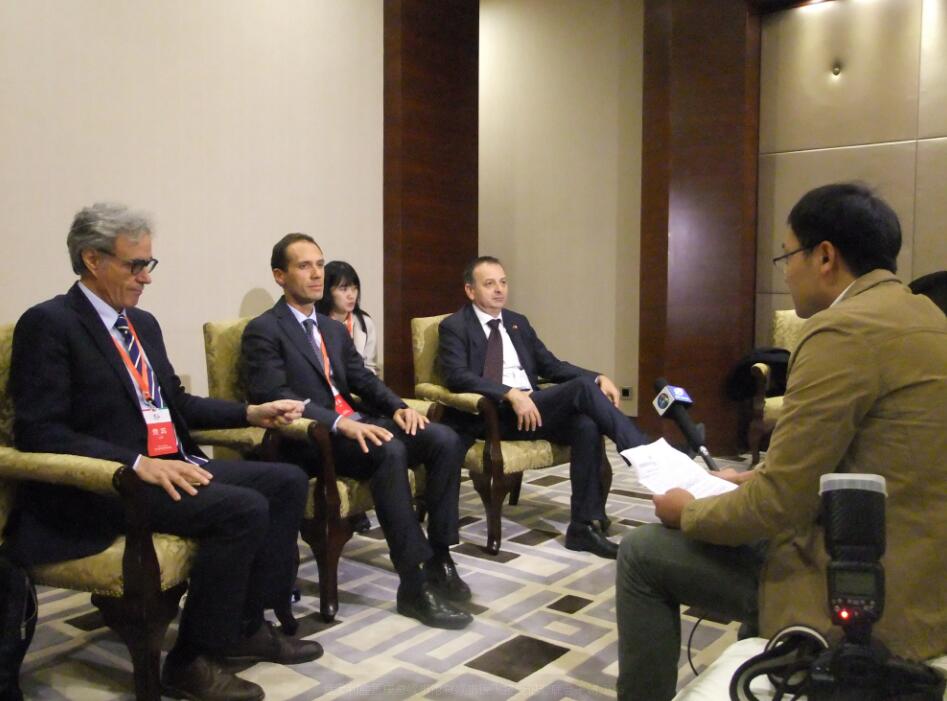 意大利驻重庆总领事馆总领事倪飞接受记者联合采访。