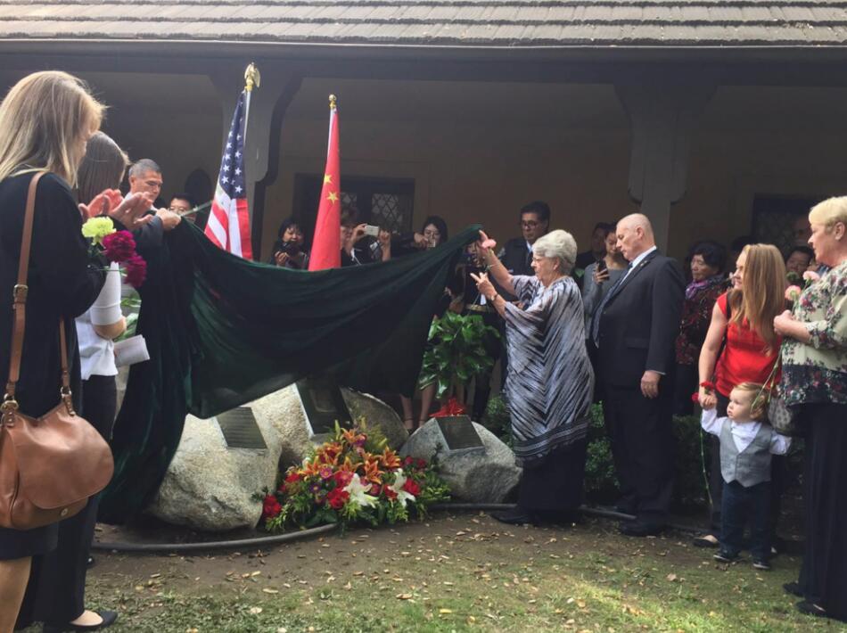 据悉,此次纪念碑落成典礼由美国纪念南京大屠杀联合会(又名寻求正义基金会)、侵华日军南京大屠杀遇难同胞纪念馆,及美以美联合基督教会联合主办。中美官员、侨学界代表,南加社团民众,以及威尔逊医生的家人,《南京大屠杀》一书的作者、已故华裔女作家张纯如的父母等600余人出席了当天的揭碑仪式。(邓旭宇)