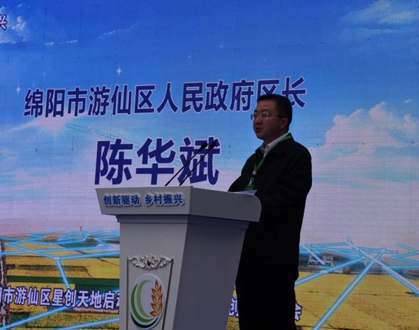 东道主绵阳市游仙区人民政府区长陈华斌在启动仪式上致欢迎词,他说,“重农固本,是安民之基”,游仙目前仍有20多万农民,区委、区政府始终坚持把三农工作作为重中之重,大力实施军民融合兴区、质量品牌兴区、人才科技兴区、基础设施兴区战略,努力建设经济繁荣、社会开放的活力游仙,山清水秀、绿色低碳的生态游仙,公正公平、和谐稳定的法治游仙,恪守诚信、坚守正义的信义游仙,民富区强、安居乐业的幸福游仙。为此,游仙加快推进农业农村综合改革,探索建立了土地托管中心,河长制“三长共治”经验在全省进行推广,农业水价综合改革“三项机制”近期被水利部专题简报刊载并印发各省;游仙大力发展都市农业,探索创新了订制生产和标准化生产模式,支持本土知名农产品建立“特色馆”“精品店”,打造“八仙过海”等一大批知名农产品品牌,着力提升农业产业和农产品附加值;游仙积极构建新型田园综合体,打破区、乡镇、村社地域界限,集中要素保障,积极发展适度规模经营,探索打造街子镇富乐花乡、柏林镇洛水之心等田园综合体,取得了良好成效。