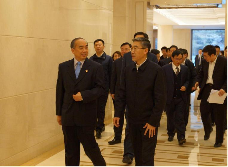 吉林省委常委、常务副省长林武(左)、长春市委副书记、市长刘长龙(右)步入“院士专家长春行”见面会会场。