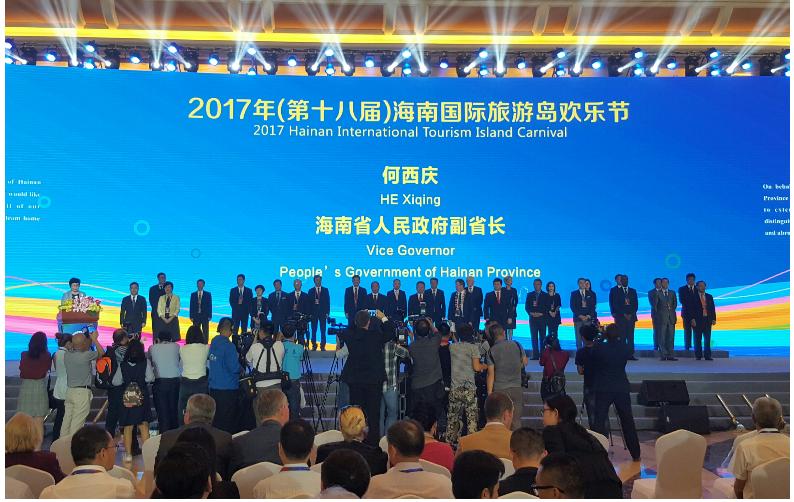 【香港商报网讯】记者吴军晖报道:美好新海南,欢乐旅游岛。18日上午,2017年(第十八届)海南国际旅游岛欢乐节在海南国际会展中心隆重开幕,来自15个国家、国内22个省区市的嘉宾代表和观众近3000余人共同见证和分享这一欢乐时刻。省委副书记、省长沈晓明宣布2017年(第十八届)海南国际旅游岛欢乐节开幕,并与嘉宾朋友共同推杆启动本届欢乐节。海南副省长何西庆在开幕式上致辞,开幕式由省政府秘书长陆志远主持。
