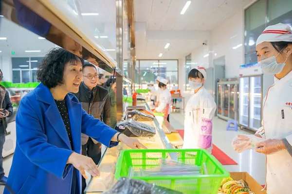 日前,任暉攜同學院辦公室、學生工作處、後勤管理處、信息中心、保衛處等處室負責人深入校園走訪,進一步了解學生入駐新校區後的生活保障情況。任暉院長一行檢查了餐飲設施和環境衛生,了解食品衛生、價格及數量等情況,與學生們一起就餐並希望同學們與學校共同監督食堂菜價的漲跌和衛生情況,發現問題通過正確的途徑及時向學校反映。同時要求後勤管理處強化細節管理;要求餐廳經營方盡可能降低價格,確保學生能吃到安全衛生、經濟實惠的飯菜,盡力減輕學生的生活負擔,讓同學們滿意、讓家長放心;安排學生工作處、後勤管理處與餐廳經營方協商,為學生提供勤工助學崗位,幫助家庭困難學生減輕生活負擔。