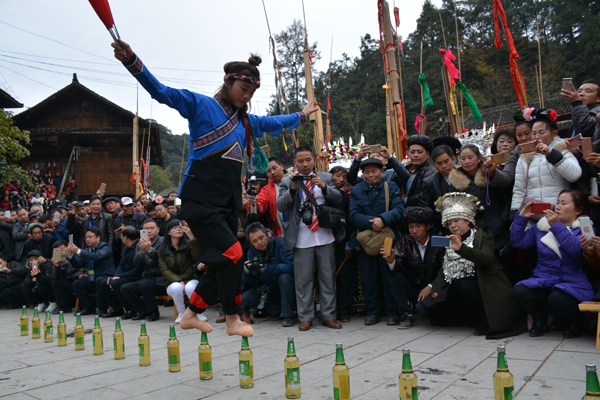 【香港商報網訊】通訊員 楊嘉浩 報道:11月21日,台江縣反排村苗族同胞身著節日盛裝歡度苗年節。