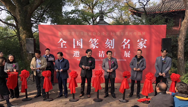 【香港商報網訊】記者謝國平報道:23日上午,浙江省青年書法家協會成立30周年大型系列活動暨全國篆刻名家邀請展假座中國印學博物館開幕。是次展覽由浙江省青年書法家協會主辦,浙江省青年書法家協會篆刻委員會承辦。中國文聯副主席、西泠印社副社長兼秘書長陳振濂,浙江省青年書法家協會主席沈樂平等一眾行內名流出席了開幕式,開幕式由浙江省青年書法家協會副秘書長兼篆刻委員會主任王臻主持。