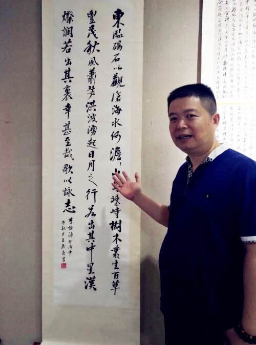 王展亮自幼受家族文化熏陶,酷愛書法藝術,還是少年的時候他經常會為得到一本好字帖而欣喜若狂,在那個物質貧瘠的年代,他經常以水代墨,以地板做紙而練字;初學柳公權、顏真卿;後臨王羲之、孫過庭;雖然後來工作緊張,壓力重重,但也從未間斷過臨帖、讀帖;早年還有幸得到李鐸、陳永正、方斌等現代書法大家指點,受益良多;多年來亦和各界書法愛好者交流心得,共同學習;作品“觀滄海”入展第七屆廣東省新人新作書法展。王展亮書法作品風格清雋飄逸,筆法老練,結構嚴謹,秀美;一看作品便能讓人眼前一亮,能讓人感覺到古韻強烈,也能感受到漢字的筆畫和結構之美,正如他所說“書法藝術是我們中華文化的特有載體,作為一名書法愛好者,我們對古人要有敬畏之心,尤其是書法藝術,必須要學習古人之法,必須要從臨帖開始,必須要更加的努力,才能把漢字寫得更美,創作出更好的書法作品。”