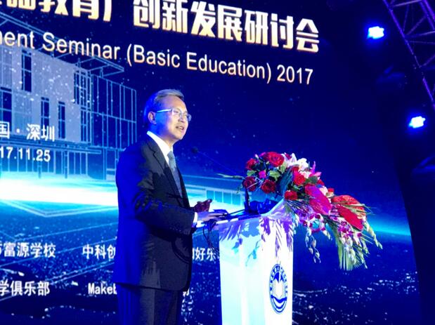 深圳市委教育工委副书记范坤在致辞中谈到,想要发展教育强国,创新是发展的第一动能,因此深圳也将教育创新作为大力研究和实践的工程,积极开展着创新、创客教育。