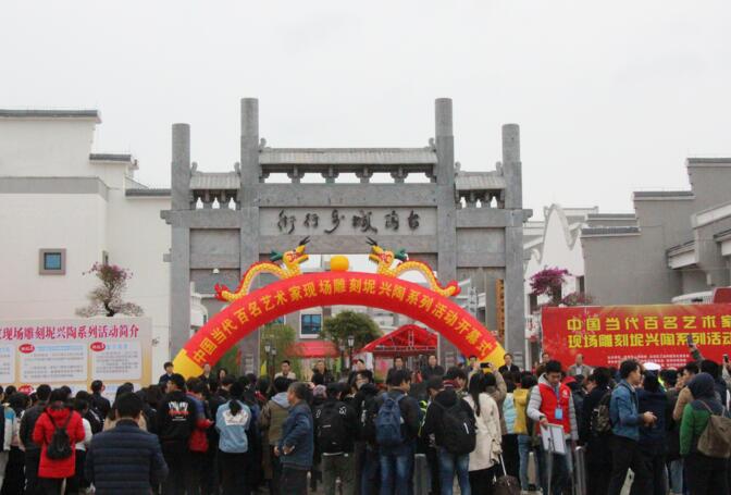据了解,中国当代百名艺术家现场雕刻坭兴陶系列活动主要有:百名艺术家现场雕刻坭兴陶、广西坭兴陶传统工艺创新交流论坛、坭兴陶展、茶叶和美食展、坭兴陶游客体验活动、民俗文化表演等。活动当天,100多名中国当代艺术家在坭兴陶文化创意产业园商业街现场进行坭兴陶雕刻创作,在此市民群众既可一睹艺术家的风采,又可体验和感受到坭兴陶文化的魅力。
