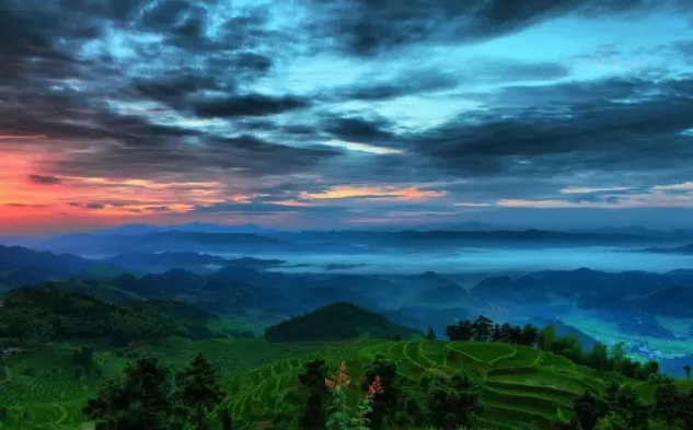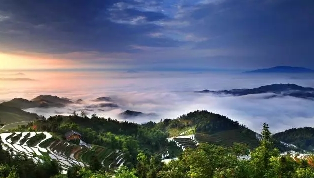 紫鹊界梯田位于湖南省娄底市新化县水车镇、隶属雪峰山余脉的奉家山地段,核心景区拥有梯田2万余亩,是首批世界灌溉工程遗产,国家级风景名胜区、国家水利风景区、国家AAAA级旅游景区,国家首批自然与文化双遗产地,并被纳入中国重点农业文化遗产名录。