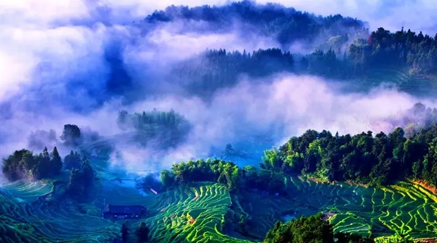 紫鹊界梯田起源于先秦,盛于宋明,已有两千余年的历史,最早为苗瑶两族祖先开创,是南方稻作文化和苗瑶山地渔猎文化交融揉合的历史遗存,是人与自然的伟大杰作。 她集自然美、古朴美、形态美、文化美于一体,有“梯田王国”之美誉。