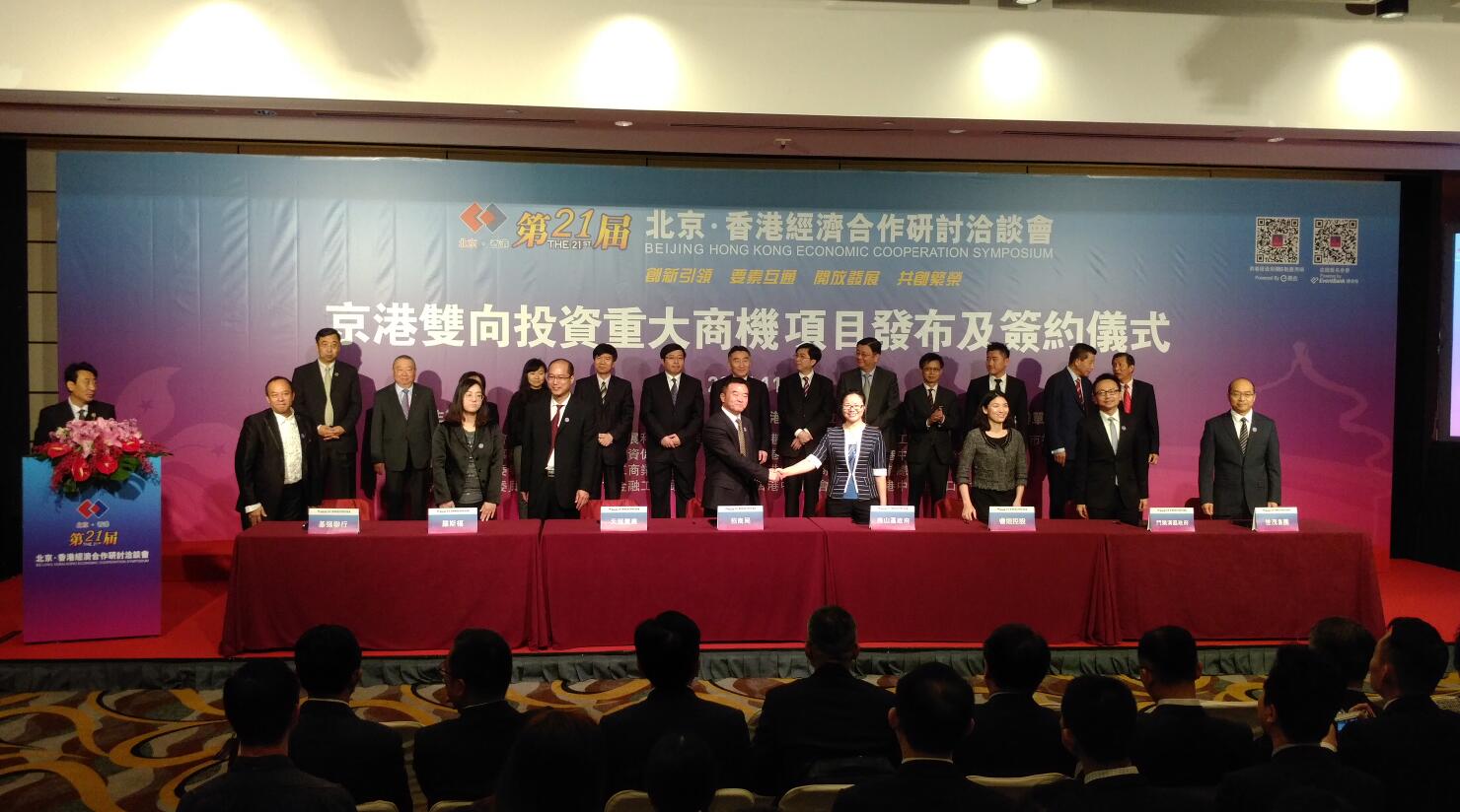 第二十一屆北京·香港經濟合作研討洽談會京港雙向投資重大商機項目發布及簽約儀式在香港舉行,共簽約24個項目,簽約金額達108.2億美元。近十年,兩地已在這一平臺上達成了700多億美元的投資合作。