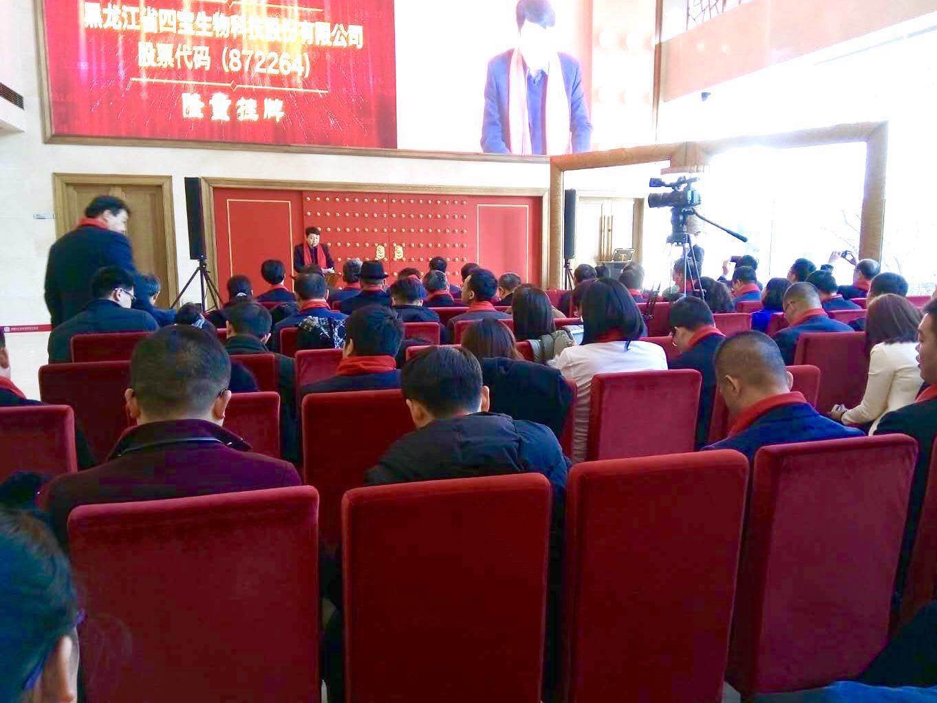 该公司在伊春市和铁力市两级市委、政府的关心和支持下、在财达证券的辅导下,其成功在新三板挂牌。四宝生物企业法定代表人、董事长兼总经理张凤春表示:四宝生物挂牌新三板仅仅是个开始,四宝生物公司将按照科学规划、合理布局、长远发展的理念,努力打造中国“林蛙产业第一品牌”。将依循专业化、平台化、市场化的发展路径,继承和创新林蛙产业发展模式,逐步形成林蛙养殖基地、营销推广、产品研发、市场融资等四个板块格局,按照现代企业制度和上市公司的要求,规范运作,信息公开,接受证监部门和广大投资者的监督,将自身打造成亿级科技型企业,实现超高速增长,成为国内知名企业。