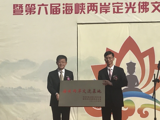 国台办交流局局长黄文涛为海峡两岸交流基地授牌仪