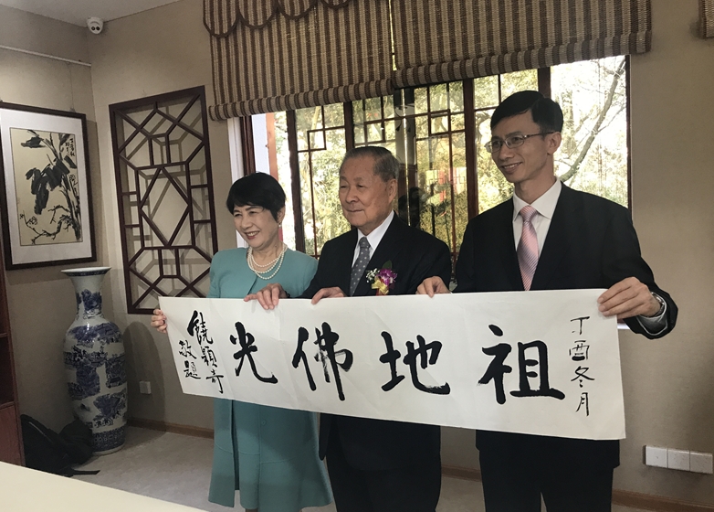 中华海峡两岸客家文经交流协会荣誉理事长饶颖奇亲笔书写祖地佛光。