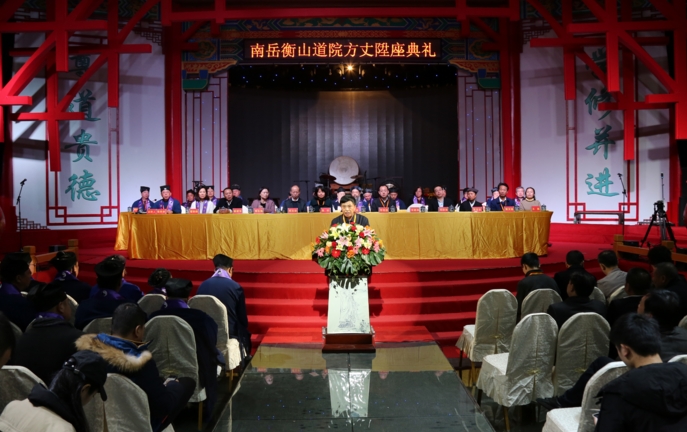 “道化天下•德在人间”南岳衡山道院方丈升座典礼上,南岳区委书记曾建华首先致欢迎辞,中国道教协会副会长、上海道教协会会长吉宏忠道长代表全国各省、自治区、直辖市道协致贺辞,中国道教协会副会长、湖南省道教协会会长、南岳衡山道院黄至安方丈和衡阳市人民政府副市长周玉梅、中国道教协会李光富会长、湖南省委统战部副部长龙建湘先后致辞。省委统战部副部长龙建湘在讲话中强调,全省道教界和信教群众要深入学习贯彻党的十九大精神,以习近平新时代中国特色社会主义思想为引领,始终高举爱国爱教的旗帜,坚持正信正行,不断加强自身建设,努力树立新时代湖南道教界的良好风范,深入挖掘道教文化中促进社会和谐、时代进步、健康文明的精髓,与时俱进推进宗教中国化,与社会主义社会相适应,为建设富饶美丽幸福新湖南、实现中华民族伟大复兴中国梦作出新的更大贡献。