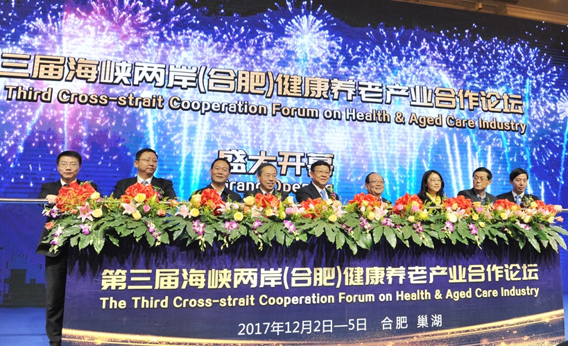 【香港商报网讯】记者龚舒斌报道:2017年12月3日,第三届海峡两岸(合肥)健康养老产业合作论坛在皖合肥市巢湖市举行。此次论坛由合肥市人民政府、安徽省人民政府台湾事务办公室、中国台商发展促进协会主办,由巢湖市人民政府、合肥市人民政府台湾事务办公室、合肥市民政局、合肥市卫生和计划生育委员会、合肥巢湖经济开发区共同承办,受到了海峡两岸社会各界的广泛关注,400余位嘉宾出席此次论坛。