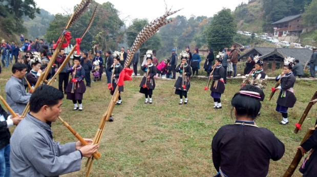 当天祭祀现场,对先祖饱含崇敬之情的扬颂村人,保持着很多苗家传统习俗,苗族芒筒芦笙祭祀乐舞、苗族口头经典“贾”、苗族历法、苗族婚俗、苗族丧葬习俗等。