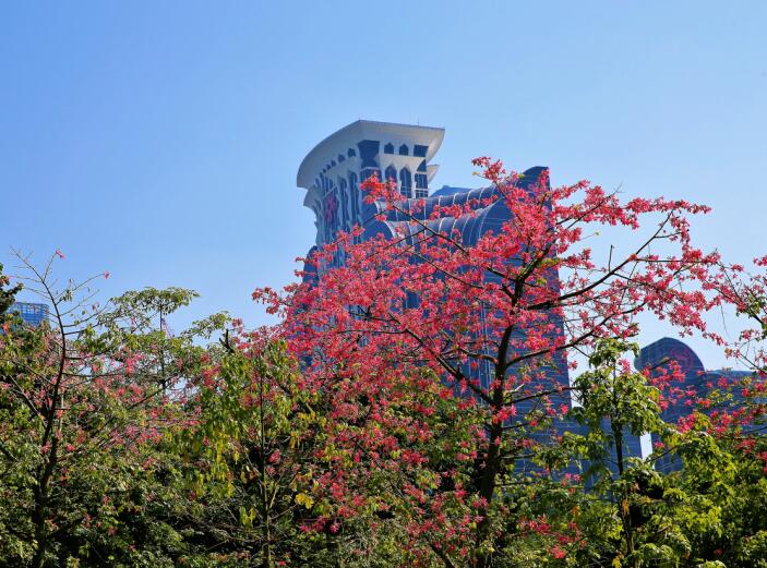 當你穿行在深圳各個街道,宮粉紫荊、大葉紫薇、美麗异木棉、紅花風鈴木、藍花楹等五彩斑斕的花朵向你迎風招展,一路芬芳的美景會不會頓時化解你工作勞累?