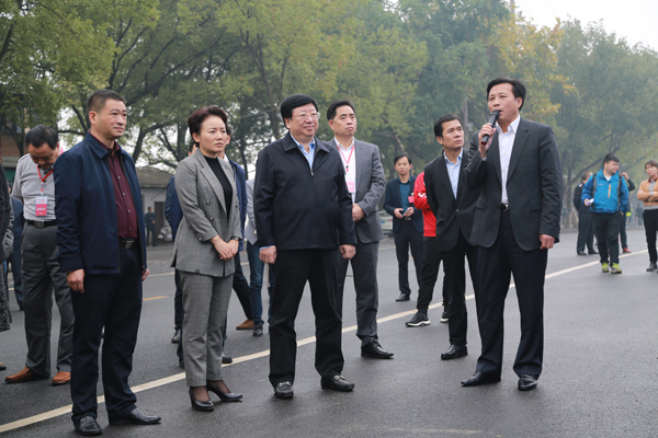 湖南常務副省長陳向群(前中)市區領導的陪同下,來零陵考察文化旅遊工作(陳斌攝)
