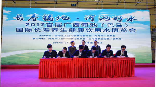 河池市人民政府副市長鍾洪在開幕式上致辭時介紹說,自2006年起,河池著力發展長壽養生健康飲用水產業,如今,飲用水產業已成為河池一大新興工業產業。現全市在冊的包裝飲用水企業58家,規模以上企業6家,分布在11個縣(區),2016年全市飲用水產量已達106萬噸,實現產值14.14億元,同比增長28%。河池將在保護好河池水資源的基礎上,科學制定河池水產業發展規劃,統籌推進招商引資工作,豐富核心產業、關聯產業和衍生產業,不斷拓展水產業內涵和外延,做強河池水產業,推動河池健康飲用水產業可持續常態化發展,力爭2020年全市飲用水產業實現產值50億元,到2025實現產值100億元的目標。