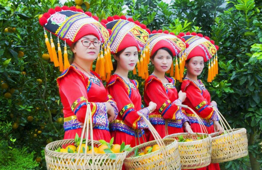 那勞宮保果場查蘭鳳帶領鄉親們采摘豐收的沙糖桔
