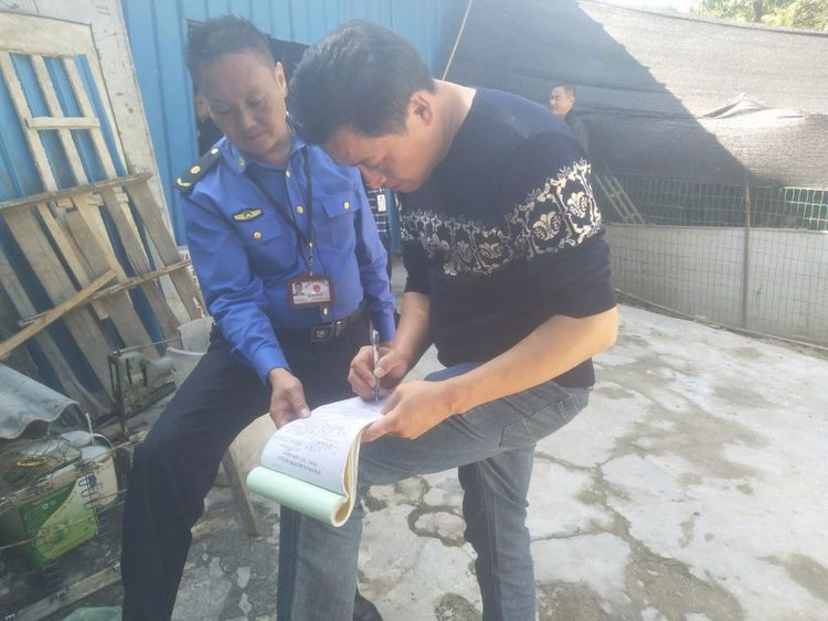 此前,碧岭街道执法队员在岁末年初安全大排查行动中发现了这两处窝点,队领导高度重视,迅速安排执法力量部署取缔行动。私宰人员发现执法人员赶到,立即弃点逃跑,执法人员在现场查扣生猪11头及一批私宰工具,查扣生猪已交深圳肉联厂进行无害化处理。当日下午,碧岭街道执法队对沙坑路100-8号工厂内非法养殖行为开出整改通知书,责令违法行为人在3日内自行清理非法养殖的9头香猪及20余只家禽。