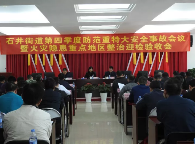 【香港商报网讯】记者焦家志 通讯员蔡传河报道: 12月5日,坪山区石井街道办事处组织召开第四季度防范重特大安全事故会议暨火灾隐患重点地区整治工作迎检验收会。石井街道党工委副书记、街道办主任孙艳琼出席会议并讲话。区环水局、区消防大队、区现役消防大队、石井派出所、坑梓交警中队、街道各部门主要负责人,深圳市第九高级中学相关负责人、各社区党委书记、社区股份公司董事长、分管安全领导、安全主任、各社区居民小组组长、辖区重点企业代表参加了会议。会议由石井街道党工委委员、武装部部长李礼奎主持。
