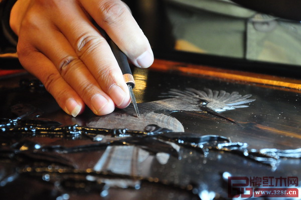 深圳泰和园红木雕刻技师现场演示丝翎檀雕