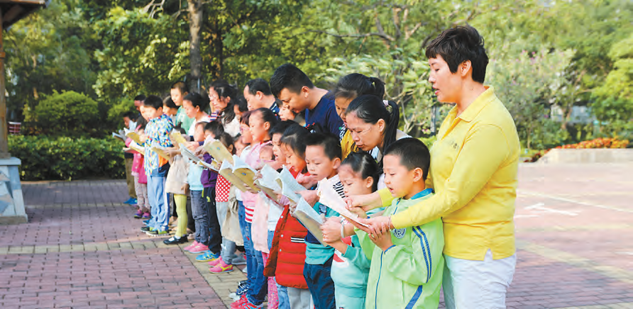 經典誦讀課猶如春風潤物般,一點點地改變著學生們。單女士的小孩今年剛上幼兒園,她告訴記者,兒子說話吐字不是很清晰,參加誦讀班的初衷就是幫助兒子更好發音。「沒想到參加誦讀課之后,語音也學了,謙讓、愛心這些他都懂得了。」單女士尤為高興的是,「小孩現在懂得了感恩父母,吃飯時會說『謝謝媽媽』,看我干完活很累時,他會說『媽媽你辛苦了,我幫你捶下背』。他第一次說的時候,真的讓我感動得流眼泪。」單女士說,每天晚上,一家三口都會進行5分鐘左右的親子共讀,孩子已能背誦《名賢集》《朱子治家格言》。