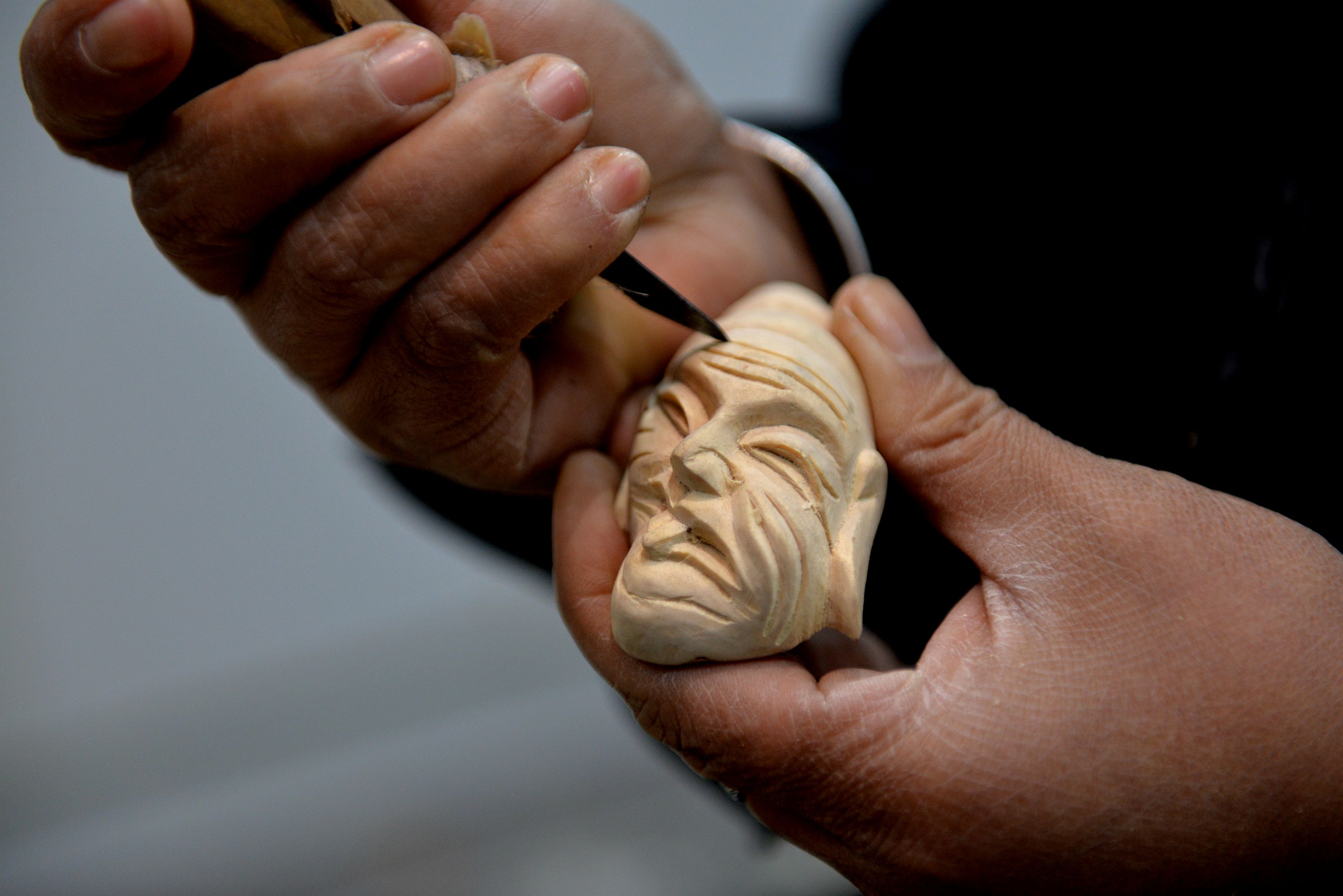 “尺寸越小,雕刻的复杂程度就越高,对上色精准度的要求越高,双手受伤的几率也就越大。完成一个标准尺寸的傩面具需要花费一整天的时间,但是要完成一个一厘米大小傩面具却需要大半天的时间。”杨云霞说。