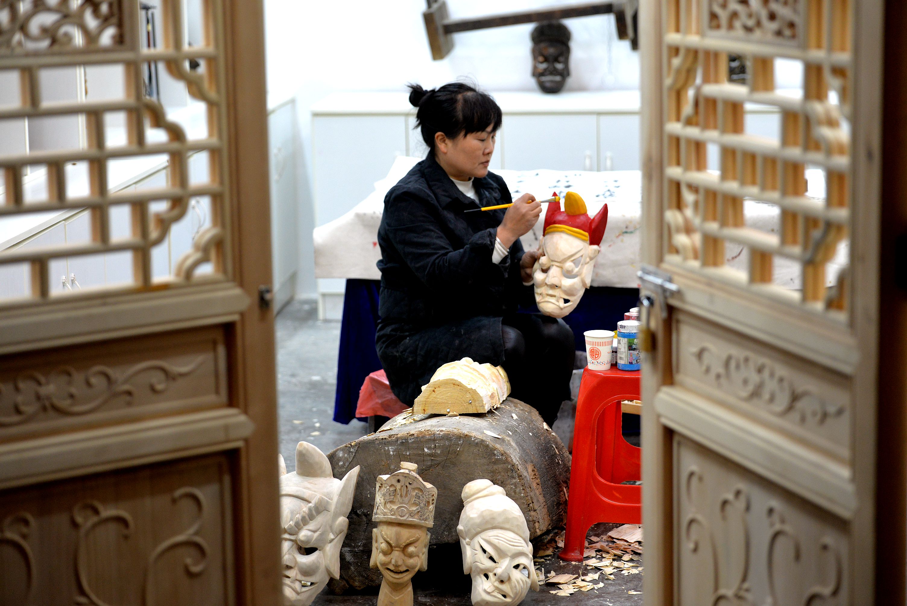 “要担起传承与发展的重任,并非口头说说那么简单,父亲能打破传男不传女的陈规,将这项技艺传授给我,我为什么不能开先河,将这项技艺交给更多想学的人呢。傩面具的手工制作工序繁多,共涉及取材、制坯、雕刻、打磨、着色、上漆成品6个流程、20多道工序。特别是原材料,由于大量林木被砍伐,仅寻找白杨树这一项就常常耗费夫妻俩不少精力。”杨云霞说,如今,我们生活在开放而不断发展的年代,就不应该墨守成规,作为文化遗产,傩面具制作及其文化不能私有,它应该为地球村的每个人分享。