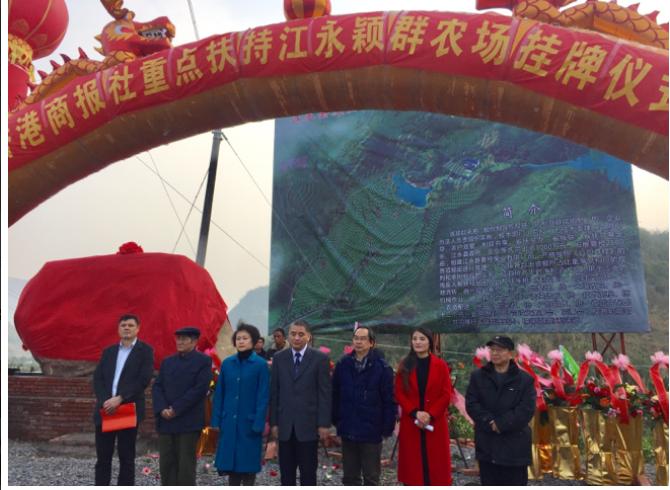 【香港商报网讯】记者赵启东 唐勇平报道: 2013年11月3日,习近平在视察湖南首次提出精准扶贫方略,要求湖南积极探索可复制的经验。湖南省扶贫办把产业扶贫作为脱贫攻坚的重中之重来抓,成功破解了产业扶贫系列难题。为积极配合湖南产业扶贫与旅游开发,香港商报选择在永州市江永县,重点扶持江永颖群生态农场。12月16日,老干部钟华卫、香港商报总经理张介岭、中共湖南省委宣部李颖副部长等领导为颖群生态农场揭牌,正式确定香港商报对该农场进行宣传报道,信息服务等多方面的重点扶持。出席揭牌仪式的还有永州市、江永县相关单位主要负责人和来自中央驻湘、香港驻湘、湖南省、永州市的近15家媒体记者。江永县副县长何福明主持了揭牌仪式,县委常委宣传部部长杨诚致欢迎词。