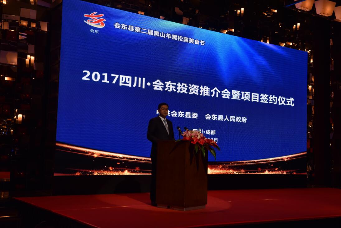 【香港商报网讯】记者 付莉莉 报道: 12月16日,会东县第二届黑山羊黑松露美食节2017四川·会东投资推介会暨项目签约仪式在成都举行,300余名各界人士出席活动。