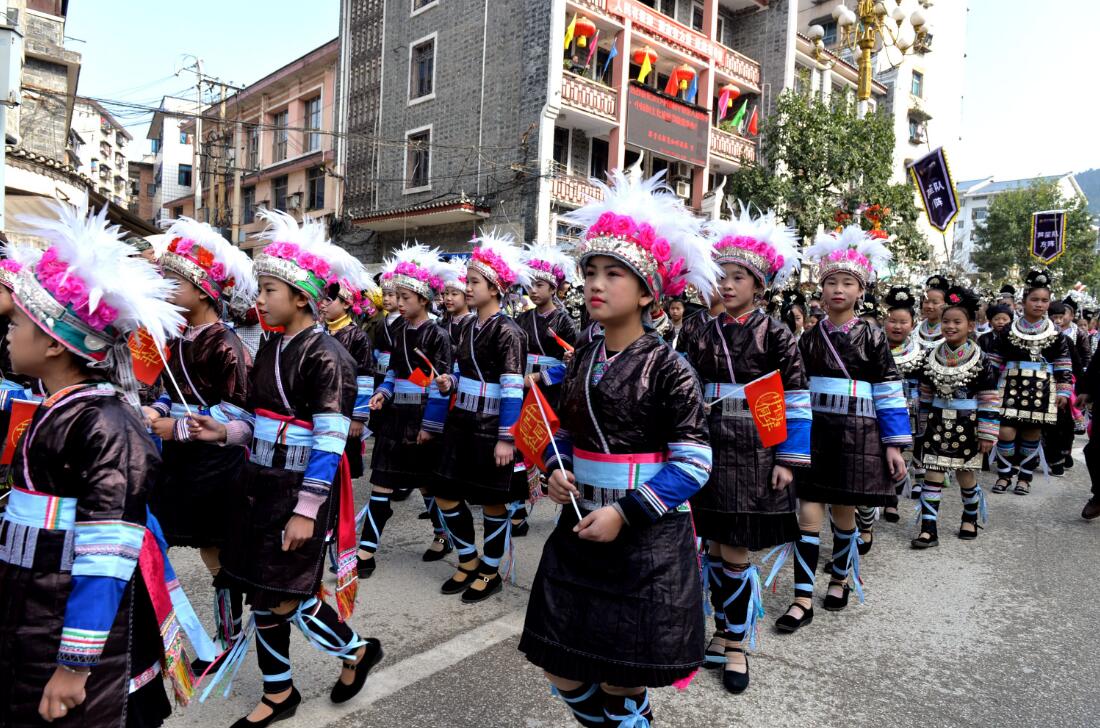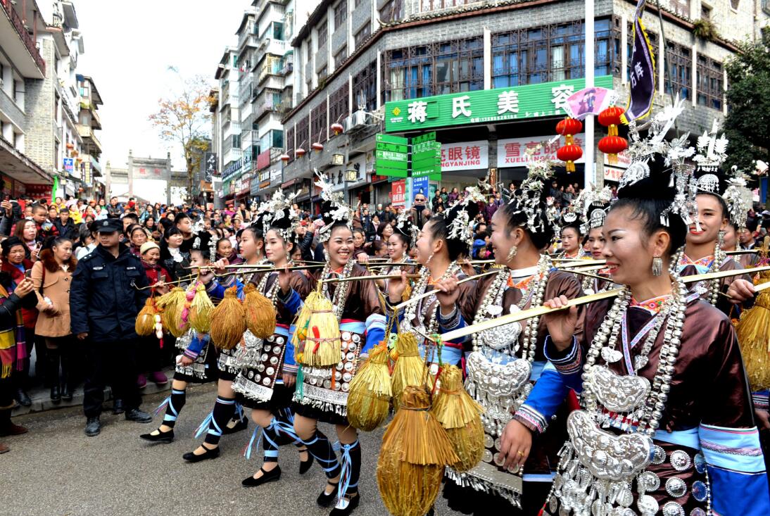 【香港商报网讯】记者 黄庆松 报道:大歌颂盛世,欢乐过侗年。12月18日,2017中国侗年暨第八届黎平·中国侗文化旅游节非遗文化巡游互动活动在黎平县城主大街上隆重举行。整个巡游队伍盛况空前,场面壮观震撼,热闹喜庆。吸引数万市民和外来游客观看,分享中国侗年非遗文化大餐盛宴,再现万人空巷的热闹场景。